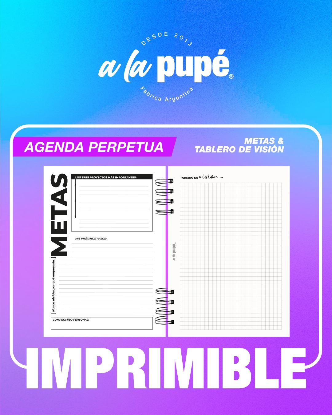 Planificación Estratégica: Calendarios 2026/2027, tablero de visión (vision board), metas y planificador anual.