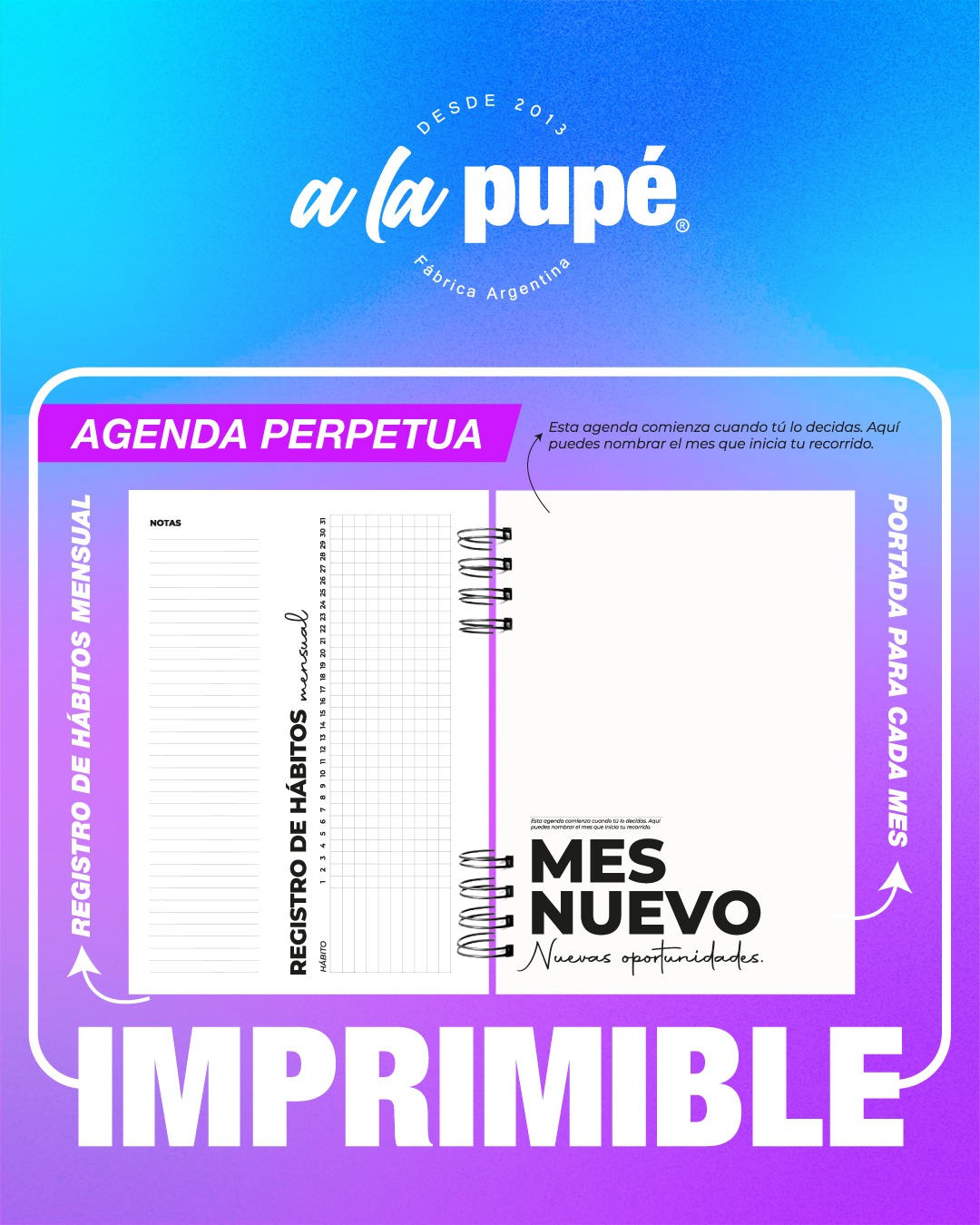 Al ser perpetua, podés comenzarla en cualquier momento del año sin desperdiciar ni una sola página.