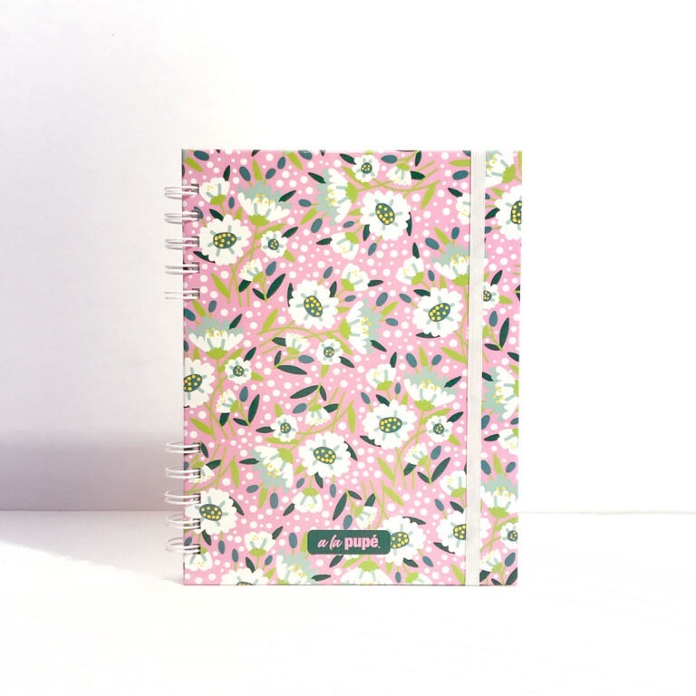 -Cuaderno 15x21cm. Tapas duras. x80hjs. rayadas 90gr. Incluye sobre interior, portada, planificador mensual y semanal.