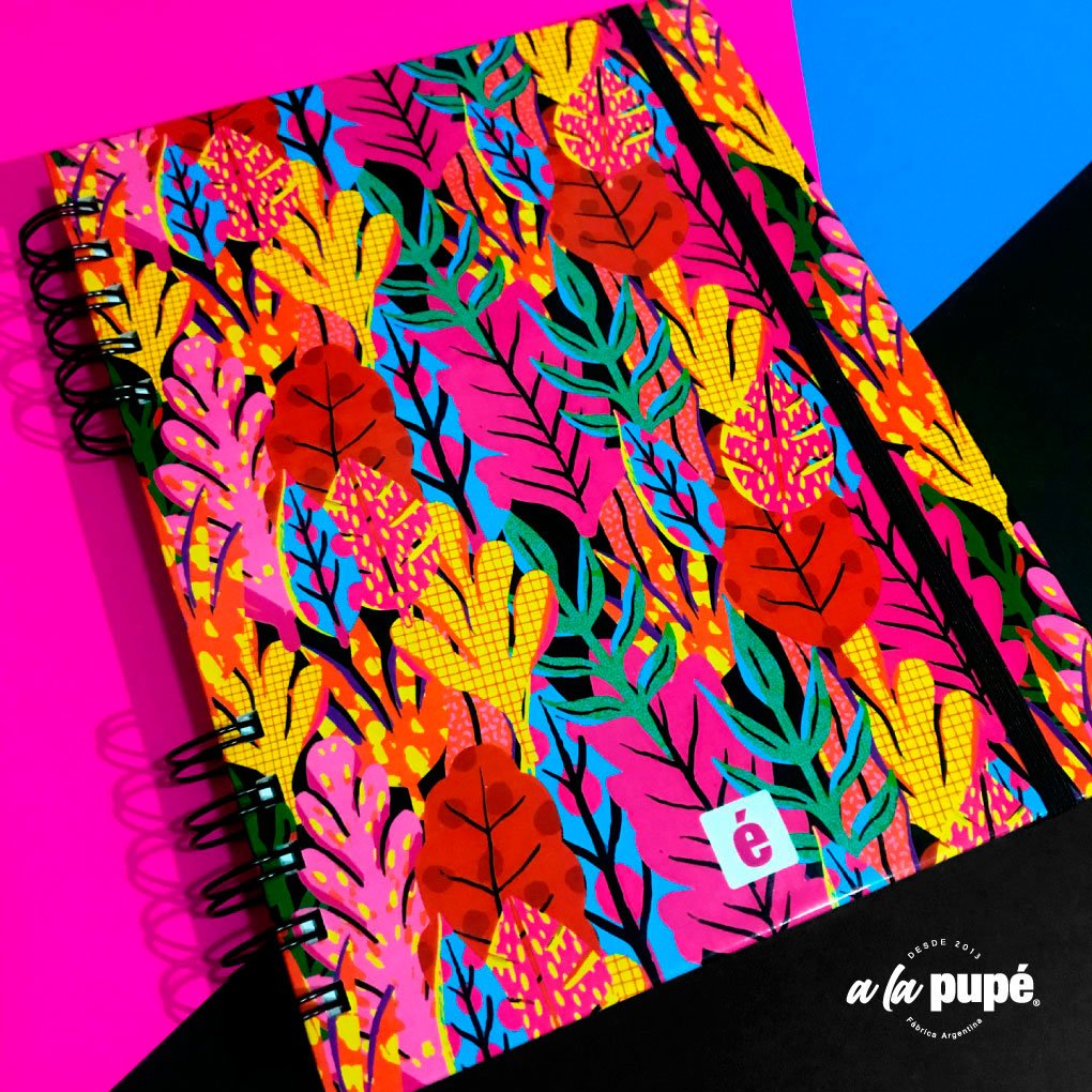 - Interior: hojas rayadas, de puntos o lisas de 90gr. (a elección) + Portada, planificador anual, horario semanal + Sobre interno al final.