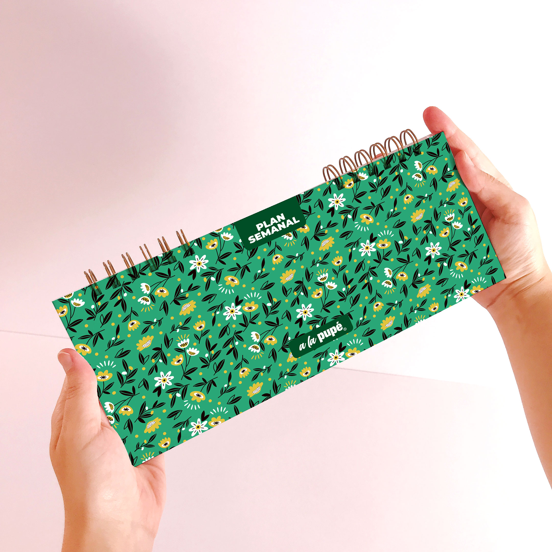 - Interior: 52 hojas 80gr. con planificador semanal perpetuo (no tiene el número en los días, lo puedes comenzar cuando quieras!) de diseño minimalista al frente y espacio para notas, control de hábitos y un espacio para que apuntes la frase del día, al dorso de cada hojita. Y trae un plus de 20 hojas lisas! (72 hojas en total)
