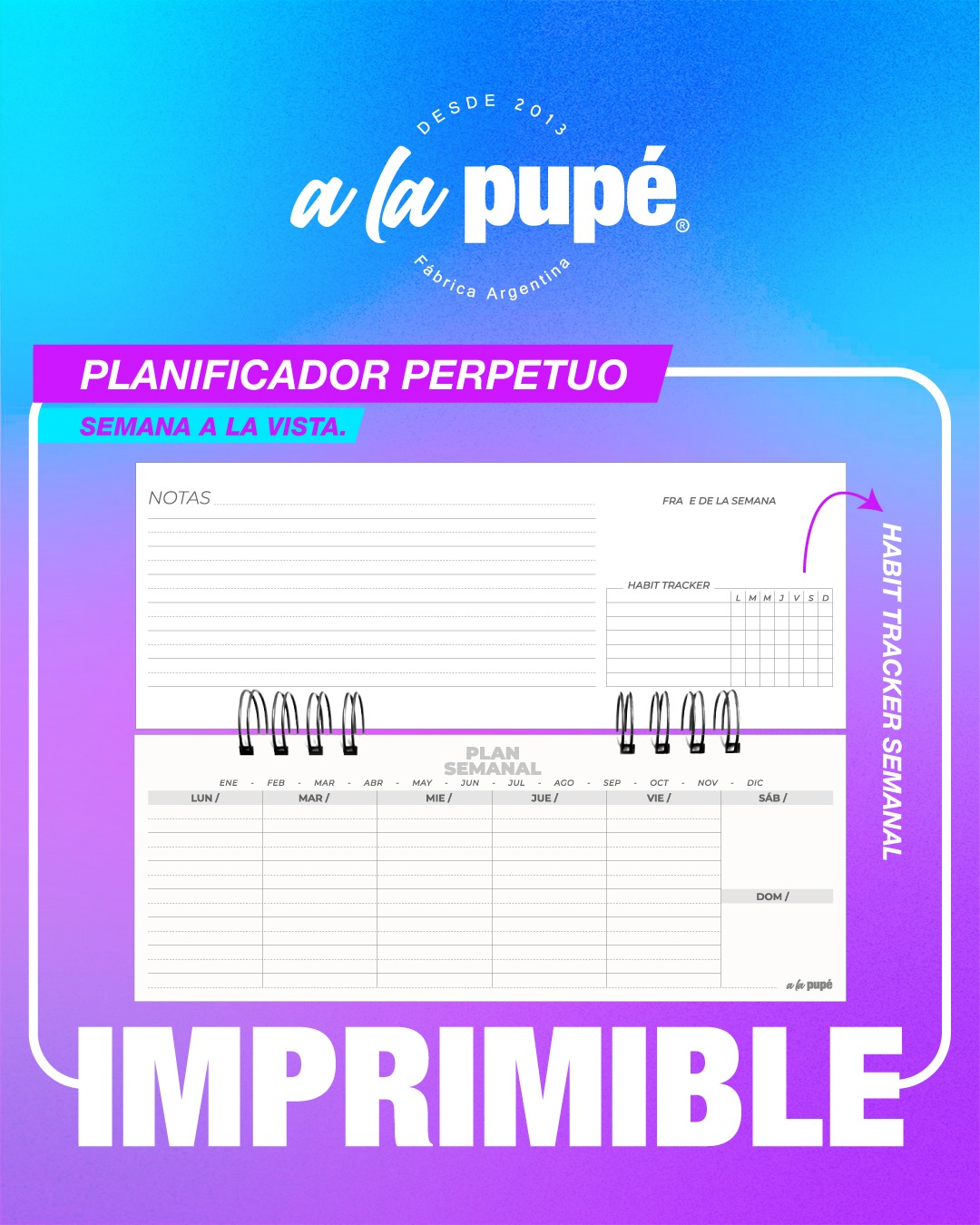 Espacio de Notas y Control de Hábitos (Dorso): Ideal para el seguimiento de tus objetivos y anotaciones importantes.