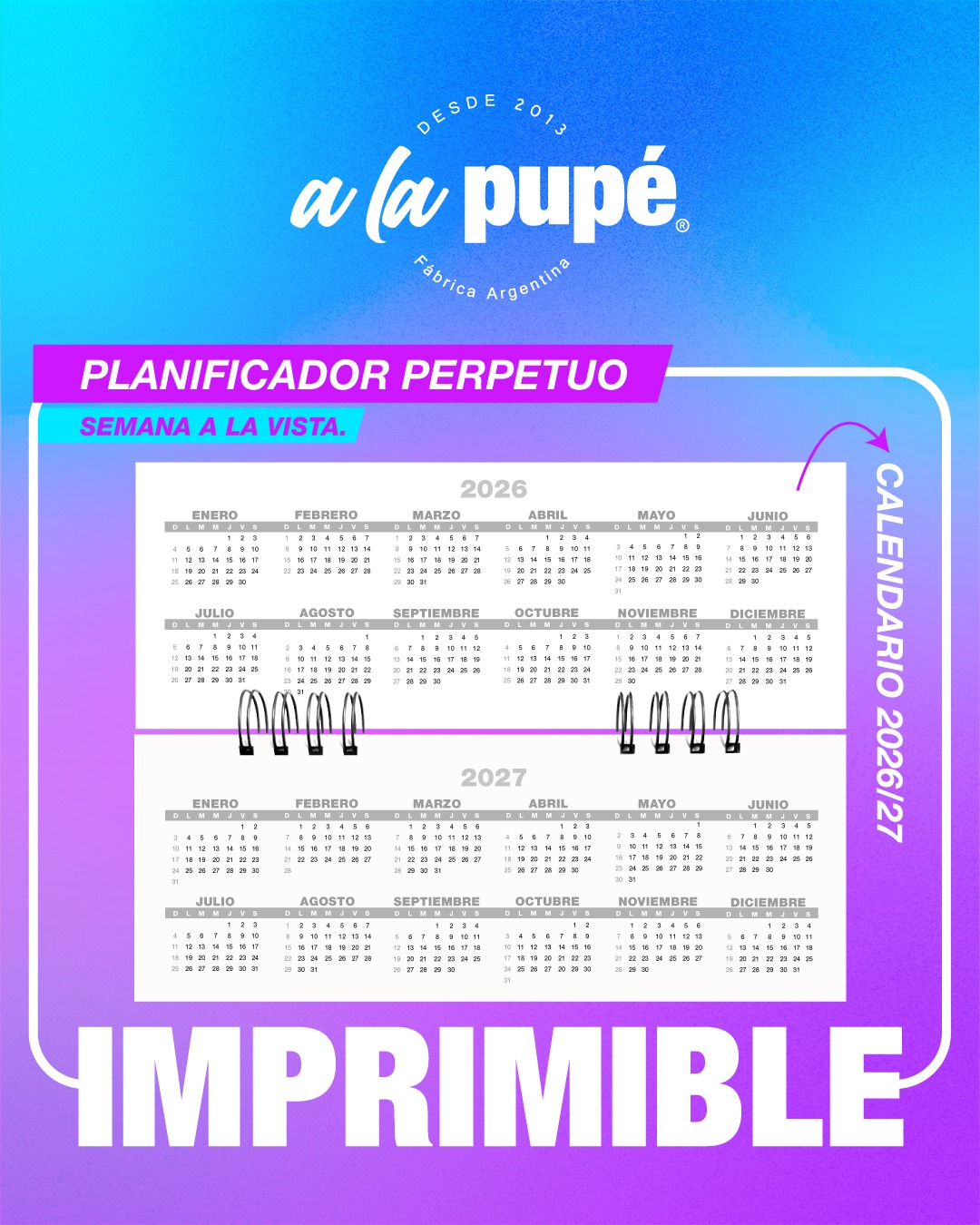 Bonus: Hoja con calendarios actualizados del año en curso y el próximo.